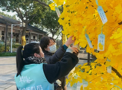 2024年冬至期间,上海市民在滨海古园工作人员的指引下,通过悬挂“思念卡片”的方式缅怀故人。 供图/上海市民政局